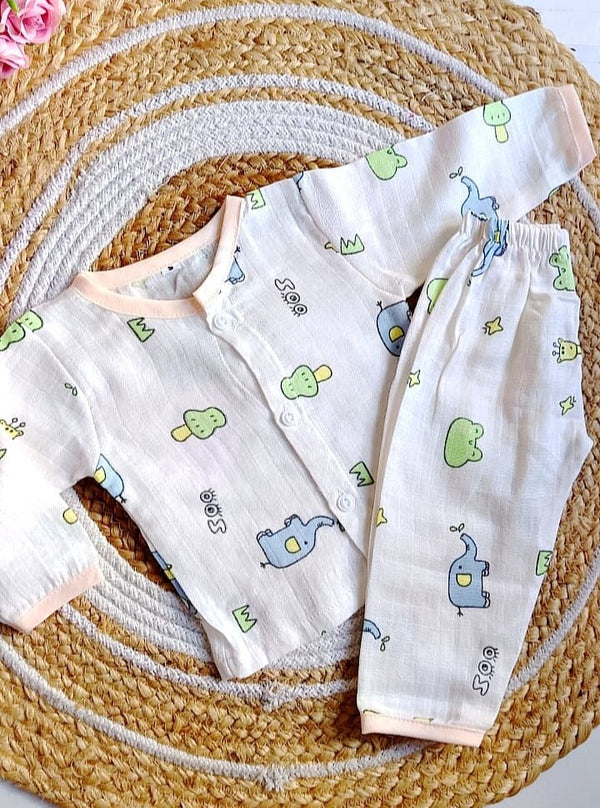 Cotton Jabla And Trouser Set - Animals Print