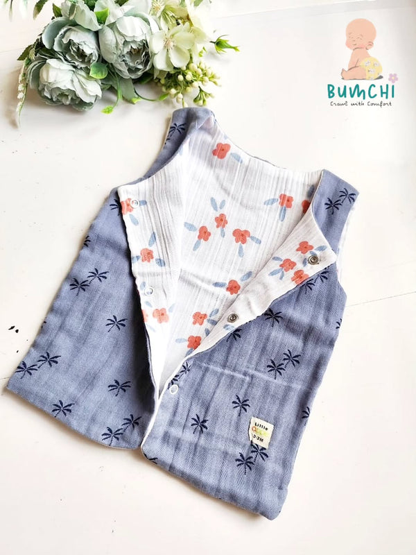 Muslin Unisex Sleeveless Co Ord Set - Navy Blue