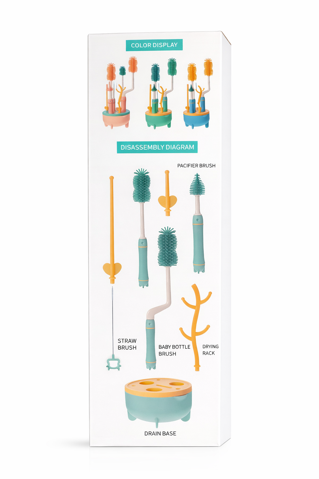 A compact, stylish bottle-cleaning solution with soft silicone brushes and a drip-dry rack. Designed to clean bottles, nipples, straws, and accessories safely while keeping your countertop neat and hygienic. Perfect for everyday baby care.